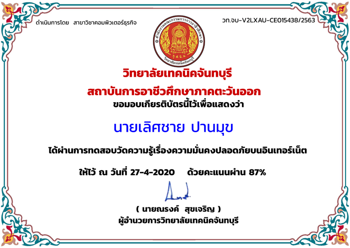 ความมั่นคงปลอดภัยทางอินเตอร์เน็ต (วช.จันทบุรี)