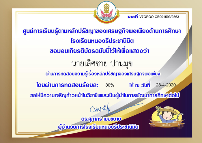 หัวข้อ: หลักปรัชญาของเศรษฐกิจพอเพียง (ร.ร.หนองรีประชานิมิต) (อ่าน 4767 ครั้ง)
