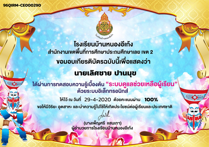 เกียรติบัตร ที่ผ่านการทดสอบออนไลน์ ของหน่วยงานการศึกษาต่าง ๆ