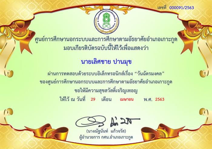 หัวข้อ: วันฉัตรมงคล (กศน.อำเภอเกาะกูด) (อ่าน 4905 ครั้ง)