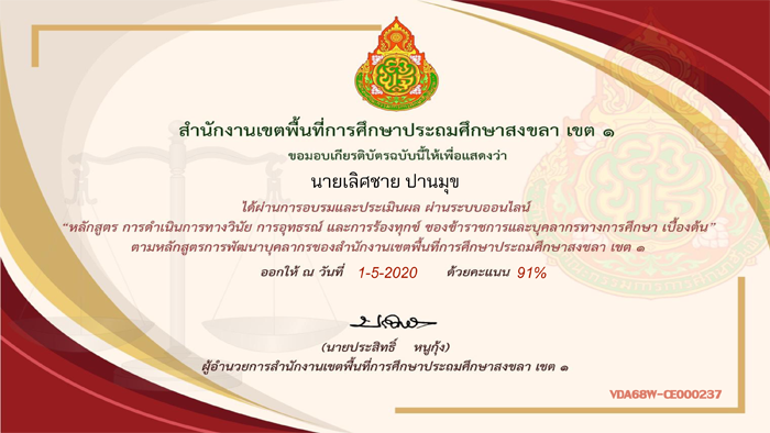 หัวข้อ: การดำเนินการทางวินัย (สพป.สงขลา เขต 1) (อ่าน 4702 ครั้ง)