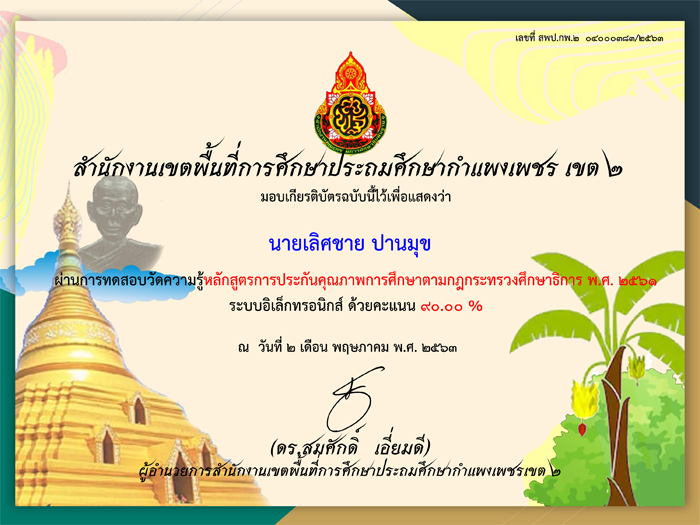 เกียรติบัตร ที่ผ่านการทดสอบออนไลน์ ของหน่วยงานการศึกษาต่าง ๆ