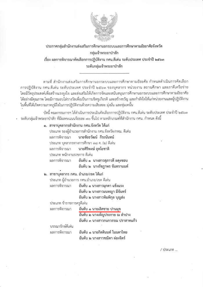 ประกาศรางวัลข้าราชการครูดีเด่น ของ กศน. ระดับกลุ่มศูนย์จังหวัด ประจำปี 2563