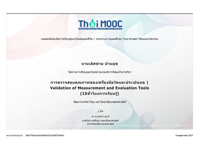 ประกาศนียบัตร (E-Learning) ของ Thai MOOC