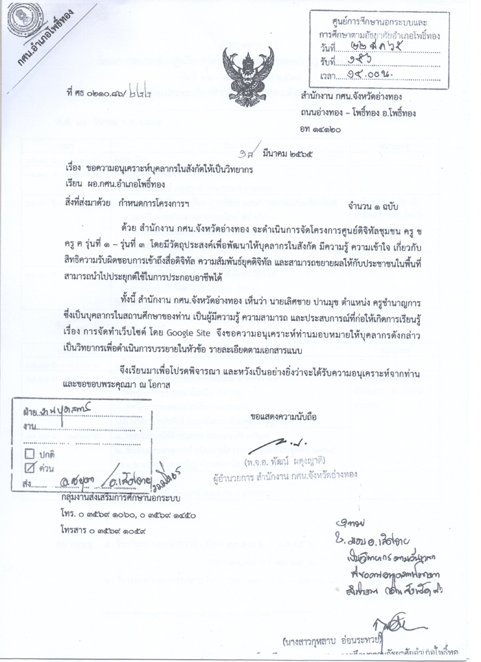 วิทยากรโครงการศูนย์ดิจิทัลชุมชน ครู ข ครู ค ประจำปี 2565 (กศน.จังหวัดอ่างทอง)