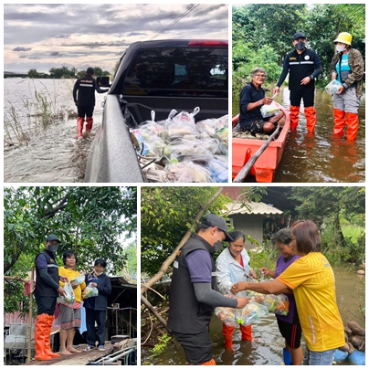 มอบถุงยังชีพและอาหารให้กับผู้ประสบภัยน้ำท่วมตำบลบางเจ้าฉ่าและตำบลองครักษ์