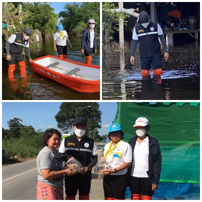 มอบถุงยังชีพและอาหารให้กับผู้ประสบภัยน้ำท่วมตำบลอินทประมูล