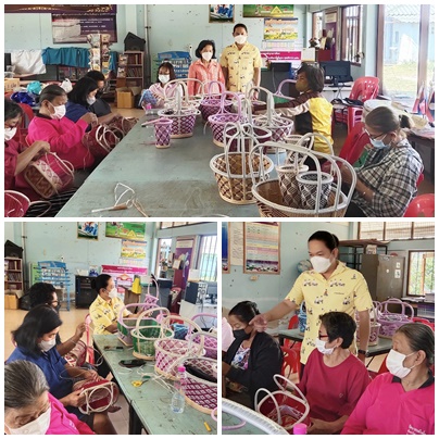 นิเทศการจัดการศึกษาเพื่อพัฒนาอาชีพ การสานตะกร้าจากเส้นหวายเทียม กศน.ตำบลบางพลับ
