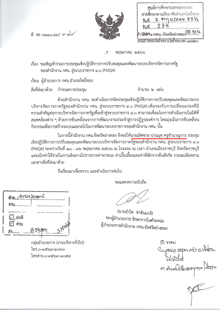 หนังสือเชิญประชุมของกรมส่งเสริมการเรียนรู้