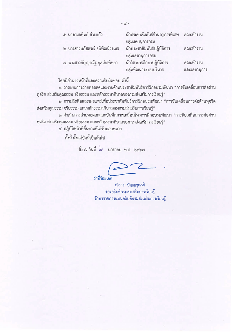 คำสั่งมอบหมายงานจากกรมส่งเสริมการเรียนรู้