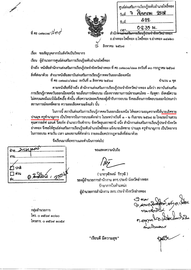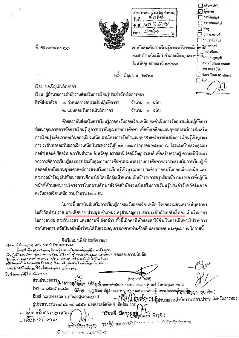 หนังสือเชิญเป็นวิทยากร และช่วยงานราชการที่สำคัญ