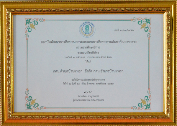 รางวัลที่ 1 ระดับภาค การบริหารจัดการ กศน.ตำบลดีเด่น ประจำปี 2557