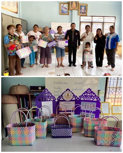 นิเทศการฝึกอาชีพ หลักสูตร การทำกระเป๋าจากเส้นพลาสติก (ศกร.ระดับตำบลยางช้าย)